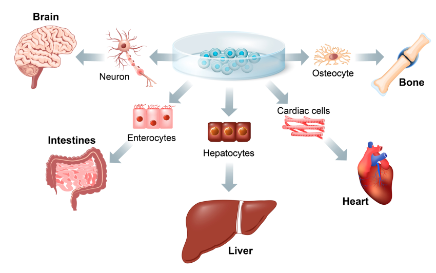 - Poseen la capacidad de transformarse (diferenciarse) en múltiples tipos de células: tejido, órgano, hueso Poseen la capacidad intrínseca de renovarse y proliferar (multiplicarse).